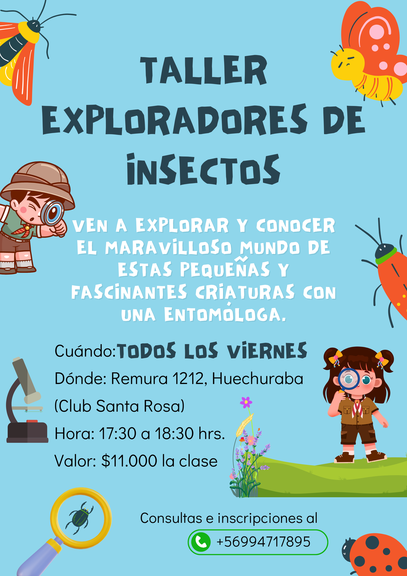 Experiencia vivencial con insectos para niñas y niños de 6 a 12 años.
